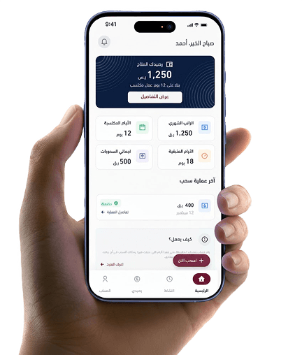 يتيح راتبي بلس للموظفين سحب جزء من رواتبهم المستحقة بناءً على عدد أيام العمل المنجزة.